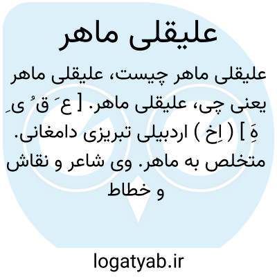 علیقلی ماهر. [ ع َ ق ُ ی ِ هَِ ] ( اِخ ) اردبیلی تبریزی دامغانی. متخلص به ماهر. وی شاعر و نقاش و خطاط قرن یازدهم هَ. ق. بود. اصل او از صحرای دامغان است سپس به اردبیل رفت و در آنجا به عطاری اشتغال ورزید. او را دیوانی است. نام او را برخی تذکره نویسان «محمدقلی ماهر» آورده اند. ( از الذریعه ج 9 ص 761 و 953 ).