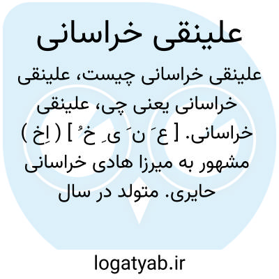 علینقی خراسانی. [ ع َ ن َ ی ِ خ ُ ] ( اِخ ) مشهور به میرزا هادی خراسانی حایری. متولد در سال 1297 هَ. ق. او راست: 1- حاشیه بر تفسیرعلی بن ابراهیم. 2- حاشیه بر مکاسب شیخ مرتضی. 3- رسالة مستخرجة من الصحاح الستة. 4- العین فی الحکمة. 5- منطق الحق. ( از اعیان الشیعه عاملی ج 42 ص 198 ).