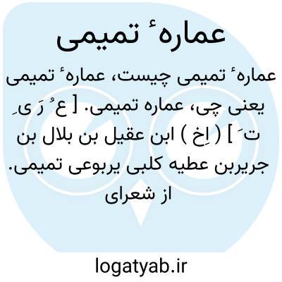 لغت نامه دهخدا عماره تمیمی. [ ع ُ رَ ی ِ ت َ ] ( اِخ ) ابن عقیل بن بلال بن جریربن عطیه کلبی یربوعی تمیمی. از شعرای یمامة در قرن سوم هجری. رجوع به عماره کلبی شود.