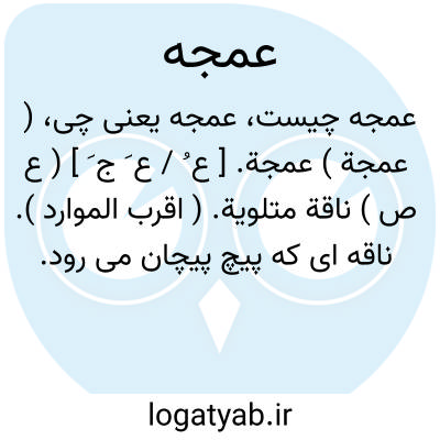 ( عمجة ) عمجة. [ ع ُ / ع َ ج َ ] ( ع ص ) ناقة متلویة. ( اقرب الموارد ). ناقه ای که پیچ پیچان می رود.