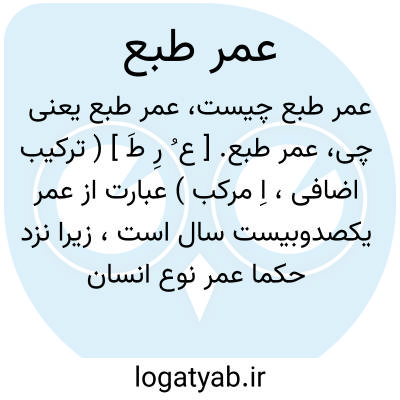 عمر طبع. [ ع ُ رِ طَ ] ( ترکیب اضافی، اِ مرکب ) عبارت از عمر یکصدوبیست سال است، زیرا نزد حکما عمر نوع انسان صدوبیست سال باشد و کمی و بیشی آن از جهت عوارض باشد. ( از آنندراج ).