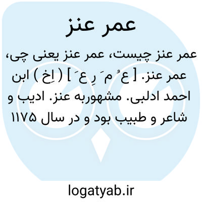 عمر عنز. [ ع ُ م َ رِ ع َ ] ( اِخ ) ابن احمد ادلبی. مشهوربه عنز. ادیب و شاعر و طبیب بود و در سال 1175 هَ.ق. در حمص درگذشت. او را دیوان شعری است. ( از معجم المؤلفین از سلک الدرر مرادی ج 3 ص 195، و ایضاح المکنون بغدادی ج 1 ص 520، و هدیة العارفین ج 1 ص 799 ).