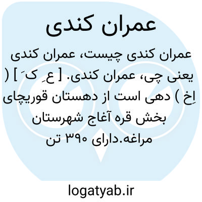 عمران کندی. [ ع ِ ک َ ] ( اِخ ) دهی است از دهستان قوریچای بخش قره آغاج شهرستان مراغه.دارای 390 تن سکنه. آب آن از چشمه. محصول آن غلات، نخود و توتون است. ( از فرهنگ جغرافیائی ایران ج 4 ).