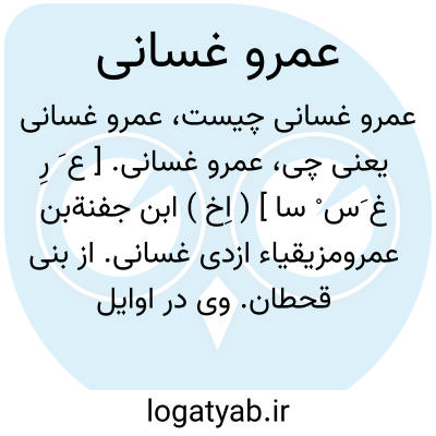 عمرو غسانی. [ ع َ رِ غ َس ْ سا ] ( اِخ ) ابن جفنةبن عمرومزیقیاء ازدی غسانی. از بنی قحطان. وی در اوایل قرن دوم میلادی میزیست و اولین تن از ملوک غسان بود که درشام تاج بر سر نهاد. وی در سرزمین بلقاء با رومیان بجنگید و آنان را شکست داد و مدت پانزده سال سلطنت کرد. ( از الاعلام زرکلی ). رجوع به مآخذ ذیل شود: السبائک ص 64. التیجان ص 283. تاریخ سنی ملوک الارض ص 77.