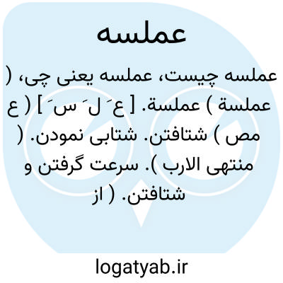 ( عملسة ) عملسة. [ ع َ ل َ س َ ] ( ع مص ) شتافتن. شتابی نمودن. ( منتهی الارب ). سرعت گرفتن و شتافتن. ( از اقرب الموارد ).