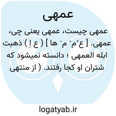 لغت نامه دهخدا عمهی. [ ع ُم ْ م َ ها ] ( ع اِ ) ذهبت ابله العمهی؛ دانسته نمیشود که شتران او کجا رفتند. ( از منتهی الارب )( از اقرب الموارد ). عمیهی. رجوع به عُمَّیهی ̍ شود.