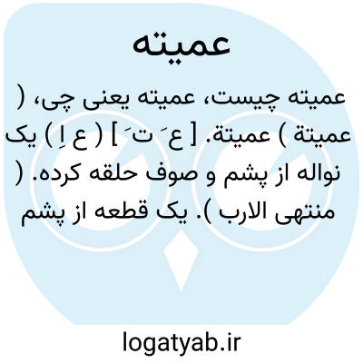 ( عمیتة ) عمیتة. [ ع َ ت َ ] ( ع اِ ) یک نواله از پشم و صوف حلقه کرده. ( منتهی الارب ). یک قطعه از پشم حلقه شده که در دست گیرند تا آن را بریسند. ( از اقرب الموارد ). ج، اَعْمِتة، عُمُت، عَمیت ( منتهی الارب ) ( از اقرب الموارد )، عَمائت. ( اقرب الموارد ).