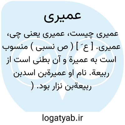 لغت نامه دهخدا عمیری. [ ع َ ] ( ص نسبی ) منسوب است به عمیرة و آن بطنی است از ربیعة. نام او عمیرةبن اسدبن ربیعةبن نزار بود. ( از اللباب فی تهذیب الانساب ج 2 ص 153 ).