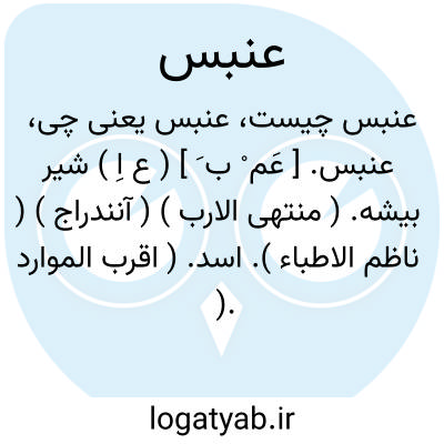 عنبس. [ عَم ْ ب َ ] ( ع اِ ) شیر بیشه. ( منتهی الارب ) ( آنندراج ) ( ناظم الاطباء ). اسد. ( اقرب الموارد ). عُنابِس. رجوع به عنابس شود. || نعت است برای شیر که وزن فنعل باشد از عبوس. ج، عَنابِس. ( از اقرب الموارد ).