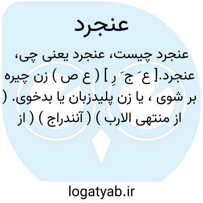 عنجرد.[ ع َ ج َ رِ ] ( ع ص ) زن چیره بر شوی، یا زن پلیدزبان یا بدخوی. ( از منتهی الارب ) ( آنندراج ) ( از ناظم الاطباء ). زن سلیطه، و یا زن بدخلق. ( از اقرب الموارد ).