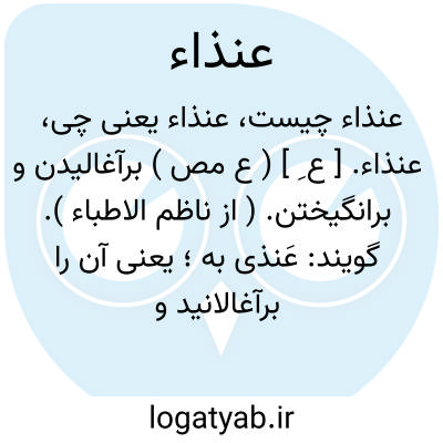 عنذاء. [ ع ِ ] ( ع مص ) برآغالیدن و برانگیختن. ( از ناظم الاطباء ). گویند: عَنذی به؛ یعنی آن را برآغالانید و برانگیخت و تشویق کرد. ( ازمنتهی الارب ) ( از اقرب الموارد ) ( از ناظم الاطباء ).