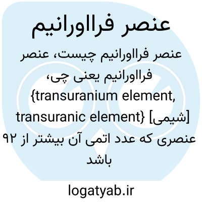 فرهنگستان زبان و ادب {transuranium element, transuranic element} [شیمی] عنصری که عدد اتمی آن بیشتر از 92 باشد