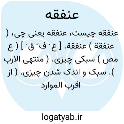( عنفقة ) عنفقة. [ ع َ ف َ ق َ ] ( ع مص ) سبکی چیزی. ( منتهی الارب ). سبک و اندک شدن چیزی. ( از اقرب الموارد ). || ( اِ ) ریش بچه، یعنی موی پاره مابین لب زیرین و زنخ. ( از منتهی الارب ) ( از آنندراج ). ریش بچه، یعنی موی زیر لب. ( دهار ). مویهای اندکی است مابین لب زیرین و زنخ، و بجهت سبکی و اندکی آن بدین نام خوانده شده است. و گاهی محل این مویها را نیز عَنْفَقَة نامند. ج، عَنافق. ( از اقرب الموارد ).