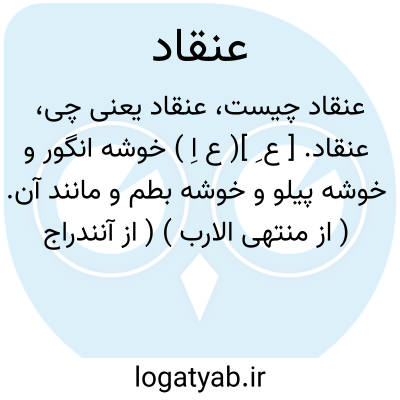 لغت نامه دهخدا عنقاد. [ ع ِ ]( ع اِ ) خوشه انگور و خوشه پیلو و خوشه بطم و مانند آن. ( از منتهی الارب ) ( از آنندراج ) ( از ناظم الاطباء ) ( از اقرب الموارد ). عُنقود. رجوع به عنقود شود.