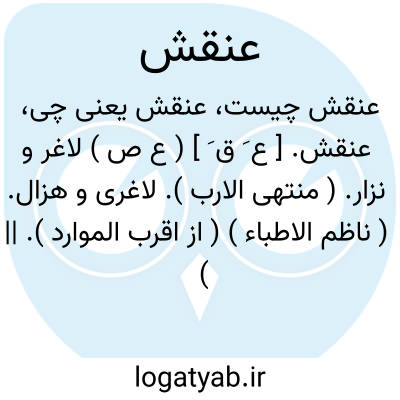 عنقش. [ ع َ ق َ ] ( ع ص ) لاغر و نزار. ( منتهی الارب ). لاغری و هزال. ( ناظم الاطباء ) ( از اقرب الموارد ). || ( اِخ )نام مردی است. ( از منتهی الارب ) ( از ناظم الاطباء ).