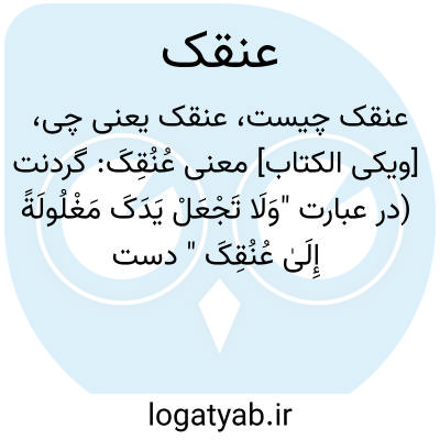 [ویکی الکتاب] معنی عُنُقِکَ: گردنت (در عبارت "وَلَا تَجْعَلْ یَدَکَ مَغْلُولَةً إِلَیٰ عُنُقِکَ " دست به گردن بستن کنایه است از خرج نکردن و خسیس بودن و خودداری از بخشش نمودن است)