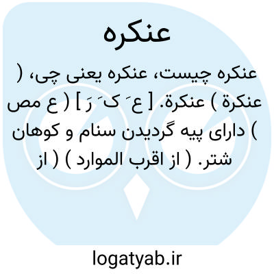 لغت نامه دهخدا ( عنکرة ) عنکرة. [ ع َ ک َ رَ ] ( ع مص ) دارای پیه گردیدن سنام و کوهان شتر. ( از اقرب الموارد ) ( از ناظم الاطباء ).عنکرة. [ ع َ ک َ رَ ] ( ع ص ) شتر ماده کلان جثه. ( منتهی الارب ) ( آنندراج ) ( از ناظم الاطباء ) ( از اقرب الموارد ).