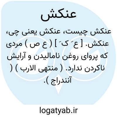عنکش. [ ع َ ک َ ] ( ع ص ) مردی که پروای روغن نامالیدن و آرایش ناکردن ندارد. ( منتهی الارب ) ( آنندراج ). مردی که اهمیت ندهد به اینکه روغن نمالد و آرایش نکند. ( از اقرب الموارد ). || ( اِخ ) نام مردی است. ( از منتهی الارب ) ( از آنندراج ).