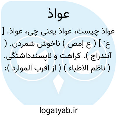 عواذ. [ ع َ ] ( ع اِمص ) ناخوش شمردن. ( آنندراج ). کراهت و ناپسندداشتگی. ( ناظم الاطباء ) ( از اقرب الموارد ): ماترکت فلاناً الا عواذاً منه؛ فلان را ترک نگفتم مگر بجهت کراهت داشتن از وی. ( از اقرب الموارد ) ( از منتهی الارب ) ( از ناظم الاطباء ). عَوَذ. رجوع به عوذ شود.
