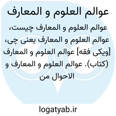 [ویکی فقه] عوالم العلوم و المعارف (کتاب). عوالم العلوم و المعارف و الاحوال من الآیات و الاخبار و الاقوال (من سیدة النساء فاطمة الزهرا علیهاالسّلام الی الامام الجواد علیه السلام) ادامه کتاب عوالم العلوم و المعارف و الاحوال شیخ عبدالله بحرانی اصفهانی استکه توسط محمد باقر موحد ابطحی اصفهانی تحقیق شده و در باره حضرت زهرا علیهاالسّلام تا امام جواد علیه السّلام می باشد.