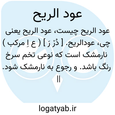 عودالریح. [ دُرْ رَ ] ( ع اِ مرکب ) نارمشک است که نوعی تخم سرخ رنگ باشد. و رجوع به نارمشک شود. || آأرغیس، که پوست ریشه امبرباریس یعنی زرشک است. رجوع به امبرباریس شود. آارخیس. رجوع به آارخیس و مخزن الادویة و تحفه حکیم مؤمن شود. || عودالصلیب. فاوانیا. ( ازتحفه حکیم مؤمن ) ( از مخزن الادویة ). رجوع به فاوانیا شود. || وج. ( از مخزن الادویة ) ( از تحفه حکیم مؤمن ). عودالوج. رجوع به وُج و عودالوج شود.
