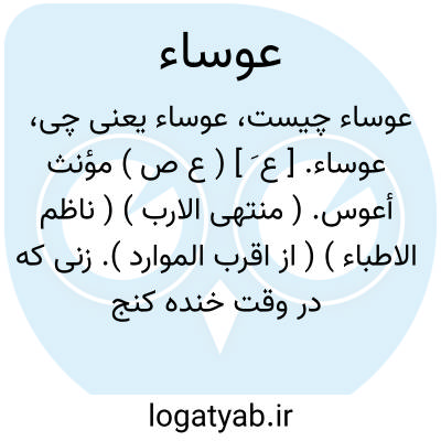عوساء. [ ع َ ] ( ع ص ) مؤنث أعوس. ( منتهی الارب ) ( ناظم الاطباء ) ( از اقرب الموارد ). زنی که در وقت خنده کنج دهن وی درآید. ( ناظم الاطباء ).دارنده عَوَس. ( از اقرب الموارد ). ج، عوس. ( اقرب الموارد ) ( ناظم الاطباء ). رجوع به اعوس و عَوَس شود. عوساء. [ ع َ ] ( اِخ ) موضعی است در مدینه. ( از معجم البلدان ).