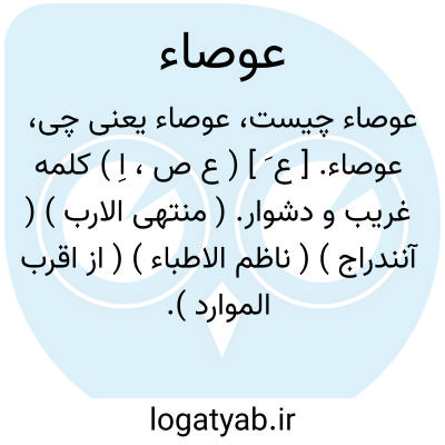 لغت نامه دهخدا عوصاء. [ ع َ ] ( ع ص، اِ ) کلمه غریب و دشوار. ( منتهی الارب ) ( آنندراج ) ( ناظم الاطباء ) ( از اقرب الموارد ). || سختی و سخت ودشوار از هر چیزی. ( منتهی الارب ) ( آنندراج ) ( ناظم الاطباء ). شدت و سختی. حاجت. ( از اقرب الموارد ): فلان یرکب العوصاء؛ او دشوارترین کارها را انجام میدهد. ( ازمنتهی الارب ) ( از ناظم الاطباء ) ( از اقرب الموارد ). ج، عوص. ( از منتهی الارب ) ( ناظم الاطباء ). || ( ص ) مؤنث أعوص. ( المنجد ). رجوع به أعوص شود. || سخت و دشوار. ( از اقرب الموارد از لسان ).عوصاء. [ ع َ ] ( اِخ ) جایگاهی است. رجوع به معجم البلدان شود.