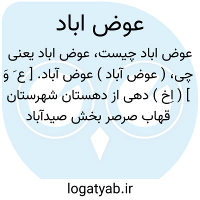 ( عوض آباد ) عوض آباد. [ ع َ وَ ] ( اِخ ) دهی از دهستان شهرستان قهاب صرصر بخش صیدآباد شهرستان دامغان با 200 تن سکنه. آب آن از قنات. محصول آن غلات، حبوب، پنبه، پسته و انگور. ( از فرهنگ جغرافیایی ایران ج 3 ).