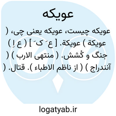 لغت نامه دهخدا ( عویکة ) عویکة. [ ع َ ک َ ] ( ع اِ ) جنگ و کُشش. ( منتهی الارب ) ( آنندراج ) ( از ناظم الاطباء ). قتال. ( اقرب الموارد ).