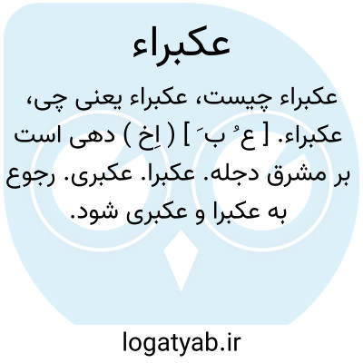 لغت نامه دهخدا عکبراء. [ ع ُ ب َ ] ( اِخ ) دهی است بر مشرق دجله. عکبرا. عکبری. رجوع به عکبرا و عکبری شود.