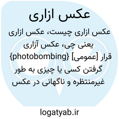 عکس آزاری. عکس آزاری یا فتوبمبینگ ( انگلیسی: Photobombing ) عکسی که در زمان گرفتن آن کسی یا چیزی به طور غیرمنتظره و ناگهانی معمولاً در پس زمینه یا پیش زمینهٔ عکس ظاهر می شود و عکس را به اصطلاح خراب می کند.