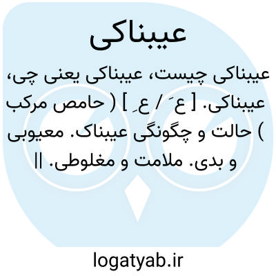 عیبناکی. [ ع َ / ع ِ ] ( حامص مرکب ) حالت و چگونگی عیبناک. معیوبی و بدی. ملامت و مغلوطی. || رسوایی و بدنامی. ( ناظم الاطباء ).