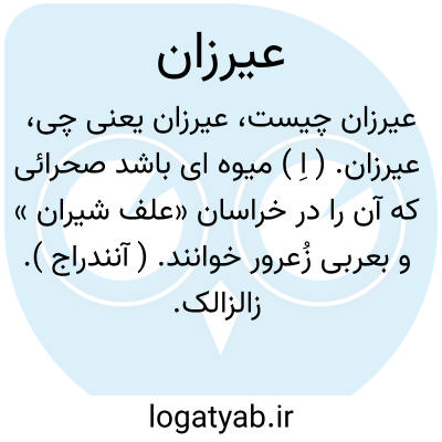 عیرزان. ( اِ ) میوه ای باشد صحرائی که آن را در خراسان «علف شیران » و بعربی زُعرور خوانند. ( آنندراج ). زالزالک. ( از ناظم الاطباء ).