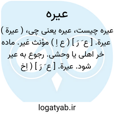 ( عیرة ) عیرة. [ ع َ رَ ] ( ع اِ ) مؤنث عَیر. ماده خر اهلی یا وحشی. رجوع به عیر شود.
