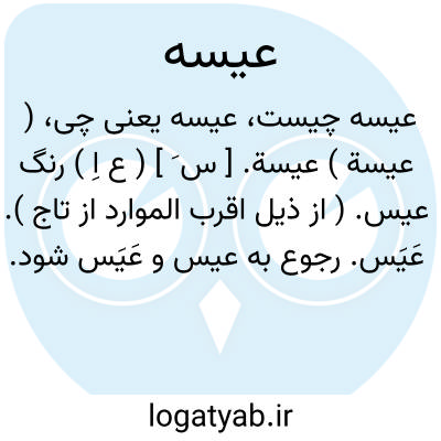 لغت نامه دهخدا ( عیسة ) عیسة. [ س َ ] ( ع اِ ) رنگ عیس. ( از ذیل اقرب الموارد از تاج ). عَیَس. رجوع به عیس و عَیَس شود.