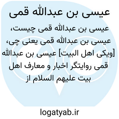 [ویکی اهل البیت] عیسی بن عبدالله قمی روایتگر اخبار و معارف اهل بیت علیهم السلام از خاندان معروف اشعری بود و بنابر آنچه از شواهد مختلف بدست می آید، وی در نیمه اول از قرن دوم در قم چشم به جهان گشود.