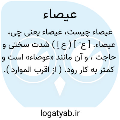 لغت نامه دهخدا عیصاء. [ ع َ ] ( ع اِ ) شدت سختی و حاجت، و آن مانند «عوصاء» است و کمتر به کار رود. ( از اقرب الموارد ).