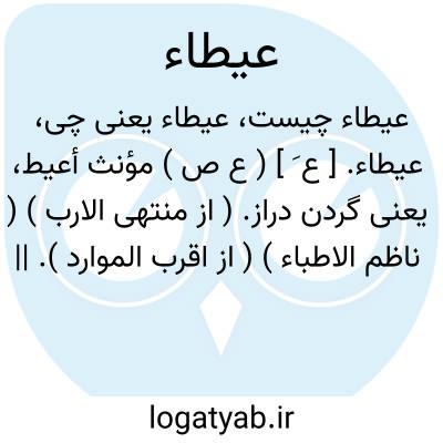 عیطاء. [ ع َ ] ( ع ص ) مؤنث أعیط، یعنی گردن دراز. ( از منتهی الارب ) ( ناظم الاطباء ) ( از اقرب الموارد ). || درازسر و درازگردن. || اباکننده و ممتنع. ( از اقرب الموارد ). ج، عیط. ( اقرب الموارد ) ( ناظم الاطباء ). || قارة عیطاء؛ پشته بلند. ( منتهی الارب ) ( ناظم الاطباء ). تپه مشرف که بسوی آسمان دراز شده باشد. || هضبة عیطاء؛ کوه مرتفع. ( از اقرب الموارد ).