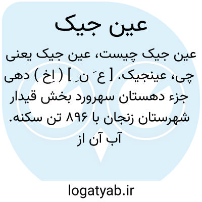 عینجیک. [ ع َ ن ِ ] ( اِخ ) دهی جزء دهستان سهرورد بخش قیدار شهرستان زنجان با 896 تن سکنه. آب آن از چشمه سار و زه آب و رودخانه محلی. محصول آن غلات و بنشن و انگور است. ( از فرهنگ جغرافیایی ایران ج 2 ).