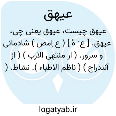 عیهق. [ ع َ هََ ] ( ع اِمص ) شادمانی و سرور. ( از منتهی الارب ) ( از آنندراج ) ( ناظم الاطباء ). نشاط. ( از اقرب الموارد ).
