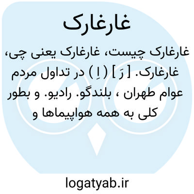 غارغارک. [ رَ ] ( اِ ) در تداول مردم عوام طهران، بلندگو. رادیو. و بطور کلی به همه هواپیماها و اتومبیلهایی که سر و صدای زیاد داشته باشندو امثال آن با نظر استهزا و تمسخر غارغارک گویند.