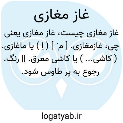غازمغازی. [ م َ ] ( اِ ) یا ماغازی. ( کاشی... ) یا کاشی معرق. || رنگ. رجوع به پر طاوس شود.