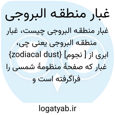 {zodiacal dust} [نجوم ] ابری از غبار که صفحۀ منظومۀ شمسی را فراگرفته است و باعث ایجاد نور منطقـه البروجی می شود