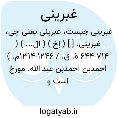غبرینی. [ ] ( اِخ ) ( الَ... ) ( 644-714 هَ. ق. / 1246-1314م. ) احمدبن احمدبن عبداﷲ. مورخ است و نسبت او به غبرا از قبائل بربر در مغرب است مولدش در بجایه است و قضاء آنجا را عهده دار بوده و در همانجا وفات یافته است. او راست: «عنوان الدرایة فی من عرف من علماء المئة السابعة فی بجایة». ( اعلام زرکلی ج 1 ص 31 ). و رجوع به معجم المطبوعات ج 2 چ مصر 1912م. ص 1407 شود.