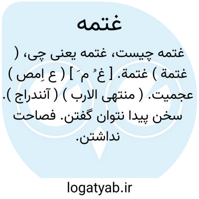 ( غتمة ) غتمة. [ غ ُ م َ ] ( ع اِمص ) عجمیت. ( منتهی الارب ) ( آنندراج ). سخن پیدا نتوان گفتن. فصاحت نداشتن. ( ناظم الاطباء ). عجمت در سخن: تقول فی منطقه غتمة. ( اقرب الموارد ).