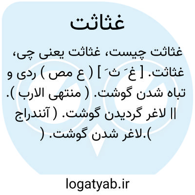 غثاثت. [ غ َ ث َ ] ( ع مص ) ردی و تباه شدن گوشت. ( منتهی الارب ). || لاغر گردیدن گوشت. ( آنندراج ).لاغر شدن گوشت. ( تاج المصادر بیهقی ). || ردی و تباه شدن سخن. ( منتهی الارب ). ردی و تباه گشتن حدیث. ( آنندراج ). بد شدن سخن. ( تاج المصادر بیهقی ).