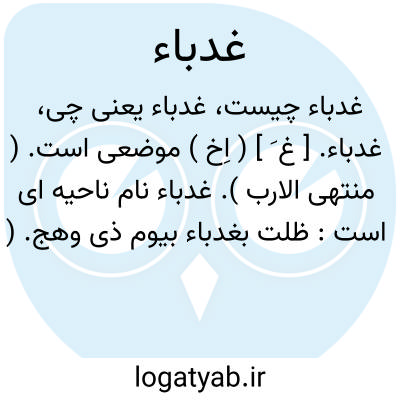 غدباء. [ غ َ ] ( اِخ ) موضعی است. ( منتهی الارب ). غدباء نام ناحیه ای است: ظلت بغدباء بیوم ذی وهج. ( از تاج العروس ).