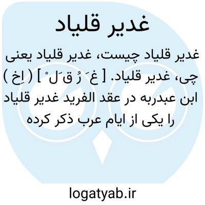 غدیر قلیاد. [ غ َ رُ ق َل ْ ] ( اِخ ) ابن عبدربه در عقد الفرید غدیر قلیاد را یکی از ایام عرب ذکر کرده گوید: قبایل عرب از قطن بیرون آمدند تا به غدیر قلیاد رسیدند. از ایشان بنی عبس به سوی آب شتافت ولی آنان را از آب بازداشتند چنانکه نزدیک بود خود و چهارپایانشان از تشنگی بمیرند، سپس به آشتی گراییدندو جنگ پایان یافت. رجوع به عقدالفرید ج 6 ص 25 شود.