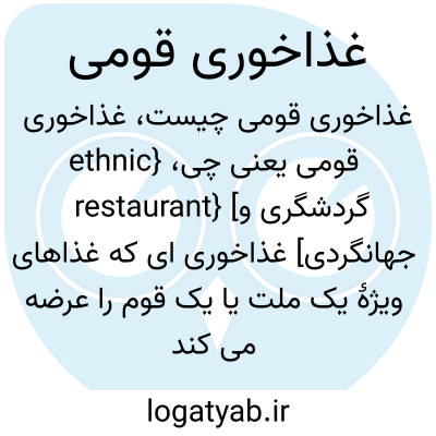 فرهنگستان زبان و ادب {ethnic restaurant} [گردشگری و جهانگردی] غذاخوری ای که غذاهای ویژۀ یک ملت یا یک قوم را عرضه می کند متـ. رستوران قومی