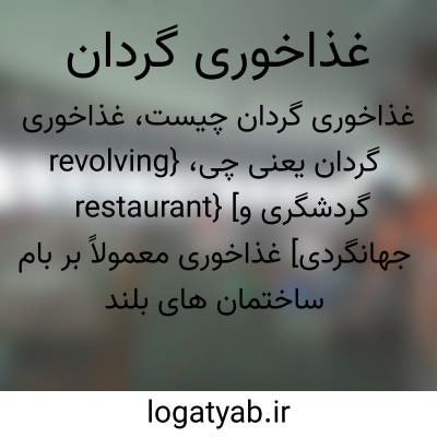 {revolving restaurant} [گردشگری و جهانگردی] غذاخوری معمولاً بر بام ساختمان های بلند با زوایۀ دید 360 درجه که آهسته به دور خود می چرخد متـ. رستوران گردان